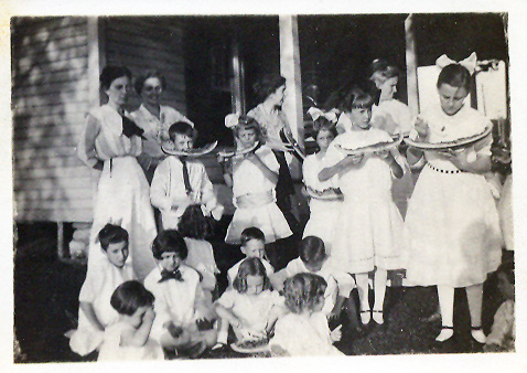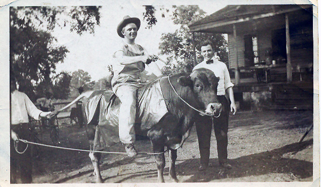 The photos below picture local citizens having a good time around the Elijah Walker house on Gate Street. The girls to the right are all dressed up, perhaps for one of the Walker daughter's birthday party. The cow riding shot shows a partial view of the front of the Walker house. These four photos were taken in the early 1900s, probably 1915 - 1925.